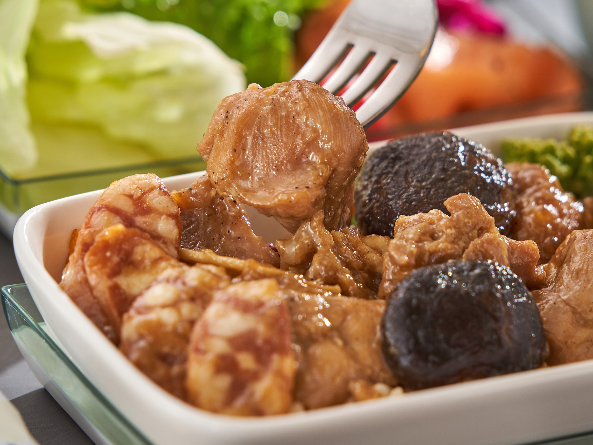 China Airlines đã hợp tác với nhà hàng "Toutouan" tại Đài Bắc, chi nhánh duy nhất được chứng nhận ở nước ngoài của nhà hàng nổi tiếng "Toutouan" tại Tokyo, để mang ẩm thực Nhật Bản với hương vị tự nhiên lên bầu trời. Hành khách có thể thưởng thức trải nghiệm ẩm thực Nhật Bản thanh lịch trên chuyến bay.